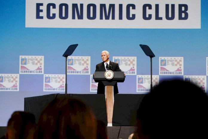 美國副總統彭斯19日在底特律經濟俱樂部發表演講。 (圖:彭斯推特)