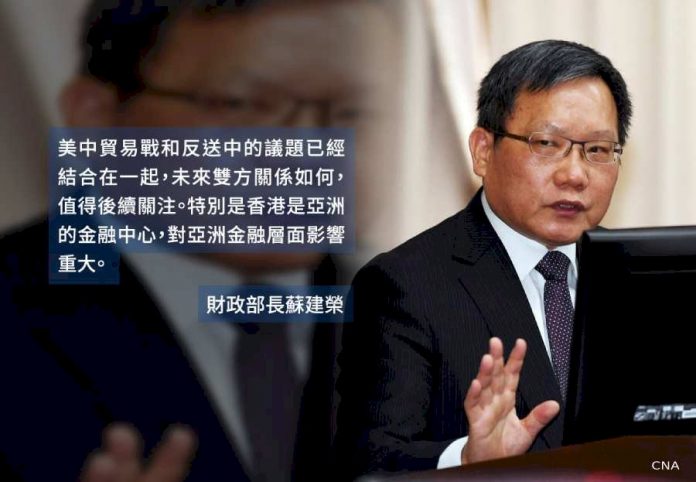 財政部長蘇建榮表示,美中貿易戰已經和反送中結合,雙方後續關係更加值得關注。(圖: 中央社)