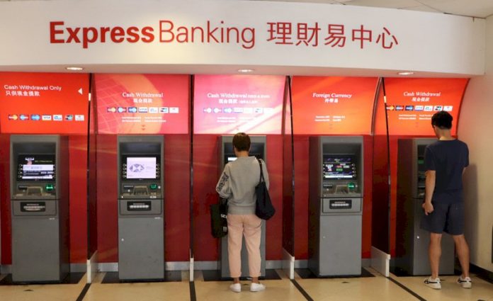 香港日前有「反送中」支持者呼籲透過在提款機提款來攻擊金融體系和銀行,但本地銀行的提款機16日看來未受影響。圖為匯豐銀行灣仔分行的自動提款機。(圖:中央社)