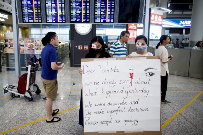 事發後隔日,好幾十名示威者到香港機場入境大廳高舉標語,表示道歉,並指出。「我們對昨天發生的事情深感抱歉。我們絕望了,做出了不完美的決定。請接受我們的道歉。」