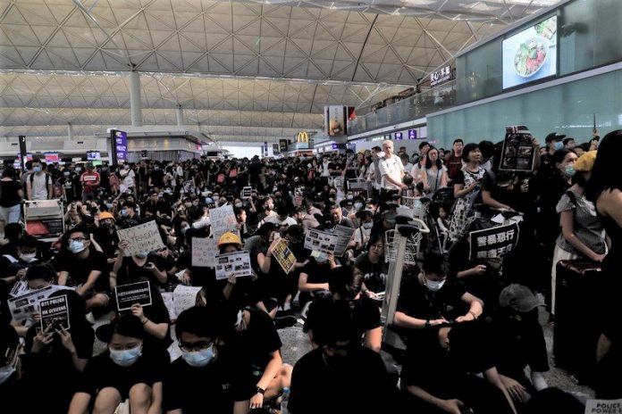 香港機場又爆大批示威人潮 5時半宣布取消所有離境航班