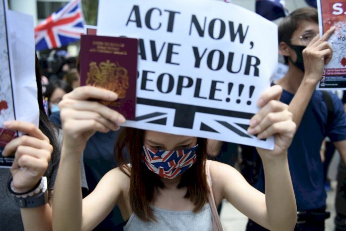 反送中示威網友發起15日中午12時在英國領事館前集會,敦促「女王陛下政府」對中國無視聯合聲明採取行動,並承認一國兩制遭受破壞。(圖:法新社)