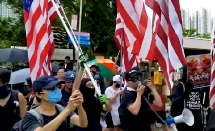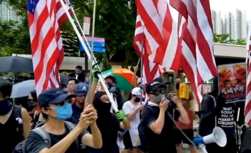 香港今天多地也出現零星的反制「反送中」活動,其中一批手持中國國旗的人士,在九龍灣淘大商場聚集並唱中國國歌,又高叫支持警察,期間與「反送中」支持者打架。
