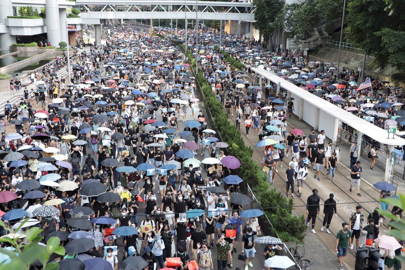 由香港泛民組織民陣發起的15日遊行未獲警方批准,但大批香港人仍自發響應網友號召,再次上街參加反送中遊行。(圖:中央社)