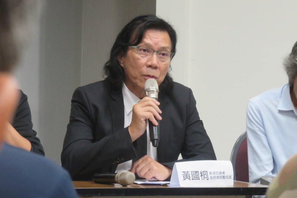 香港特首選舉委員、香港反送中運動義務、資深律師黃國桐在會中表示,場外有很多人在吼叫,批他們要來向蔡政府要錢,他說,「我們一分一毛錢都不會要」,台灣和香港很近,他們只想告訴台灣人香港的遭遇,將來台灣將會面對什麼處境。