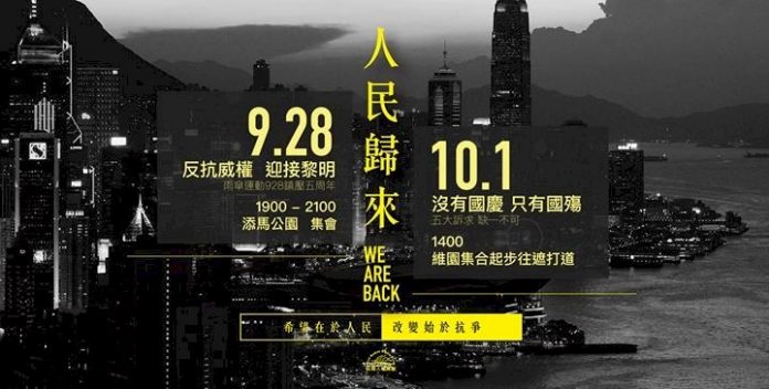 另外,民陣申請10月1日中共建政70週年當天舉行「沒有國慶 只有國殤」大遊行,目前尚未獲警方批復。