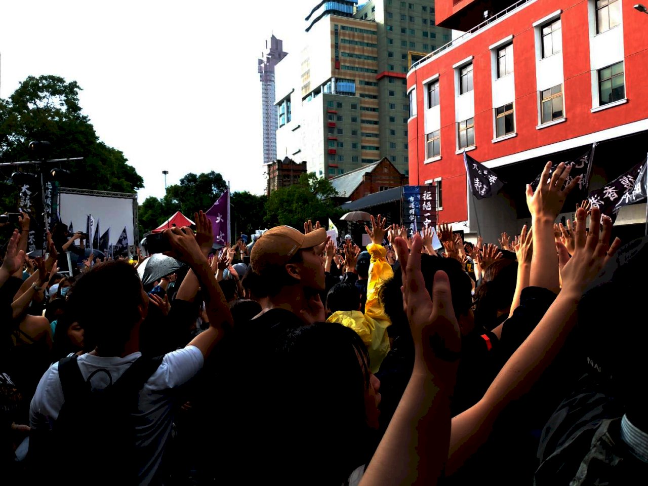反送中 台灣撐香港遊行 民眾不畏風雨展現反極權力量 2019-09-29 17:56 517 分享 Facebook LINE Twitter Linkedin WhatsApp Email Print 「929台港大遊行:撐港反極權」活動29日下午在立法院旁登場,許多民眾撐傘、穿雨衣到場參與,遊行隊伍中還有人高舉「光復香港 時代革命」旗幟,表達立場。(中央社) 由台灣多個公民團體發起的「929台港大遊行-撐港反極權」大遊行,今天(29日)下午4時從立法院濟南路出發,成千上萬的民眾身穿黑衣、冒著風雨前進,並高喊口號「五大訴求、缺一不可!」展現台灣對香港反極權的支持力量。 「929台港大遊行—撐港反極權」活動現場。(歐陽夢萍攝) 新聞引據:採訪撰稿編輯:黃美寧 央廣新聞原文
