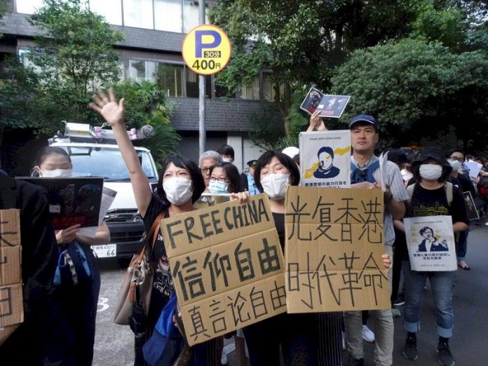 旅日的香港人、留學生、關心香港未來的日本人今天參加在東京舉行的撐香港反極權運動,活動從千鳥淵公園出發,步行到靖國神社南側的香港經濟貿易代表部附近。根據日警估計,今天參與人數超過600人。