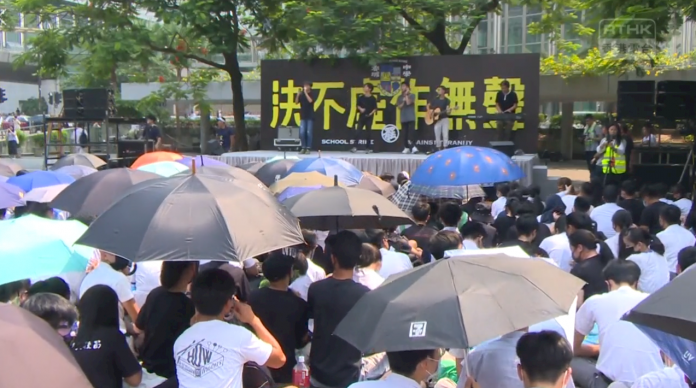 中學生罷課籌備平台與多間學校關注組於今天(30日)再度發起罷課集會,並獲批不反對通知書,與會者透過歌唱與發表演說表達訴求;16歲的Adam表示,9月2日他與同學罷課後,曾被警察搜查,但這樣白色恐怖,仍無法阻擋中學生們關心香港的心。