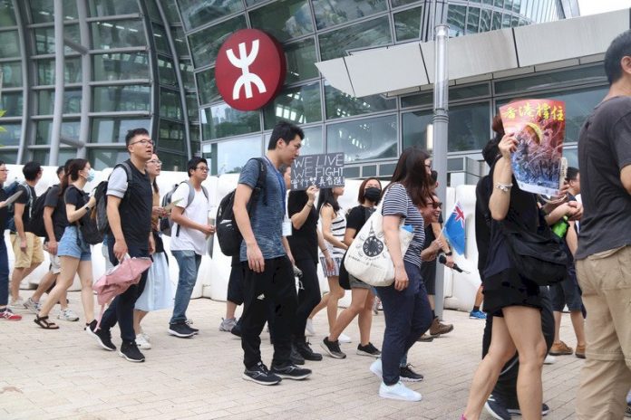 香港網民7月7日持續發起「反送中」遊行,地點在尖沙咀,終點站是最多陸客往來的高鐵西九龍站。(資料照片/中央社)
