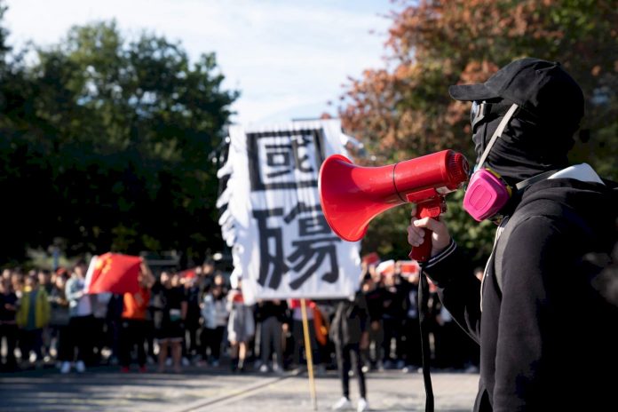 然而這場聲援港人反送中的集會卻遭到中國學生會的強力抵制,他們打出五星紅旗、唱紅歌,企圖壓制對方。其中還有人大聲叫罵、任意踩踏塗抹在地上由香港學生畫出的雨傘圖形和撐香港等字樣。一名長者甚至被故意衝撞,還有中國學生朝他身上倒水。