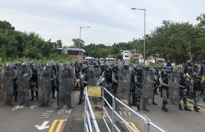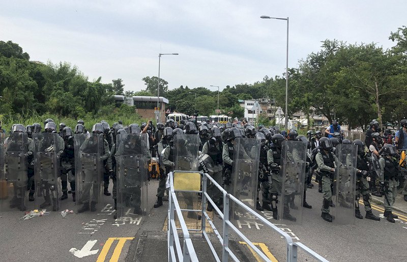 香港「反送中」運動今天(8日)再度波及本地學校,下午有示威者在荃灣一所中學聚集並闖入校園進行破壞,防暴警察到場後,示威者散去。