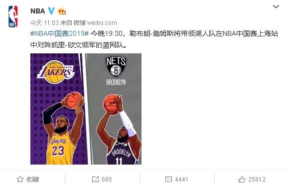 另一則貼文則稱,湖人隊和籃網隊將在今晚7時30分開始的NBA中國賽上海站上正面交鋒。