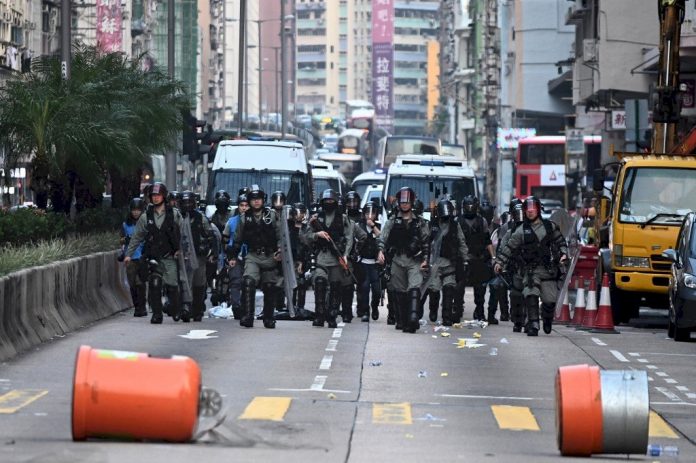 反禁蒙面示威,警方準備在長沙灣清場。 (AFP)