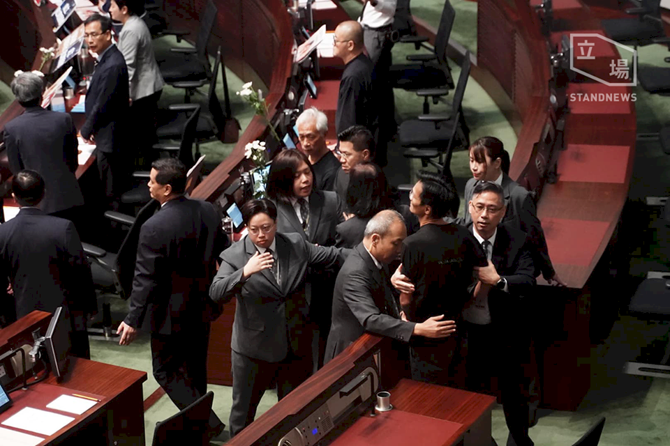 港特首議會答問被抵制,泛民議員遭勒令離場。(立場新聞提供)