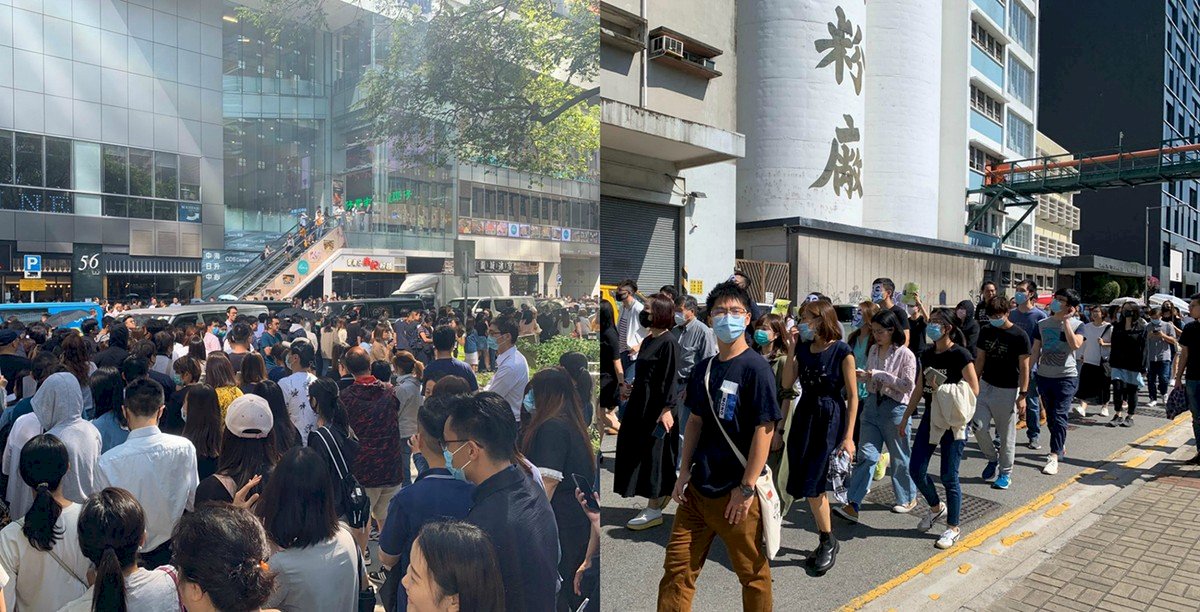 1日中午,香港中環和觀塘分別有快閃遊行。(立場新聞提供)