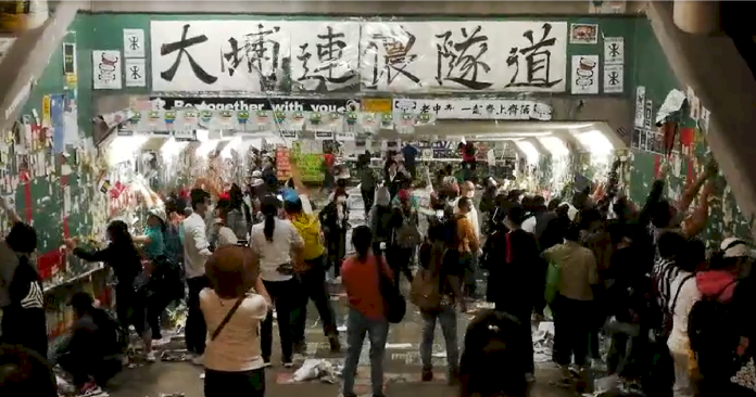 立場新聞報導,有香港民眾在今天清晨5時50分經過大埔連儂牆時,目睹有大批人士手持鐵棒、剪刀等工具,正在破壞隧道牆壁上的文宣,這名民眾隨即將過程拍下來,並發布在臉書(Facebook)社團「Tai Po 大埔」。