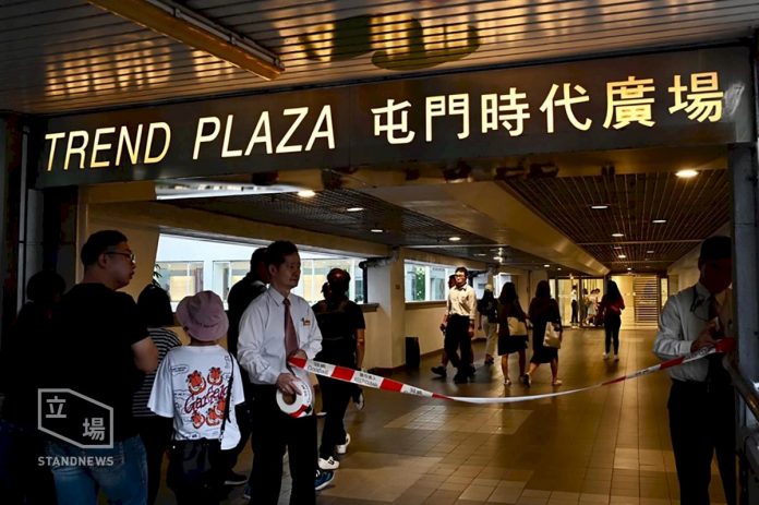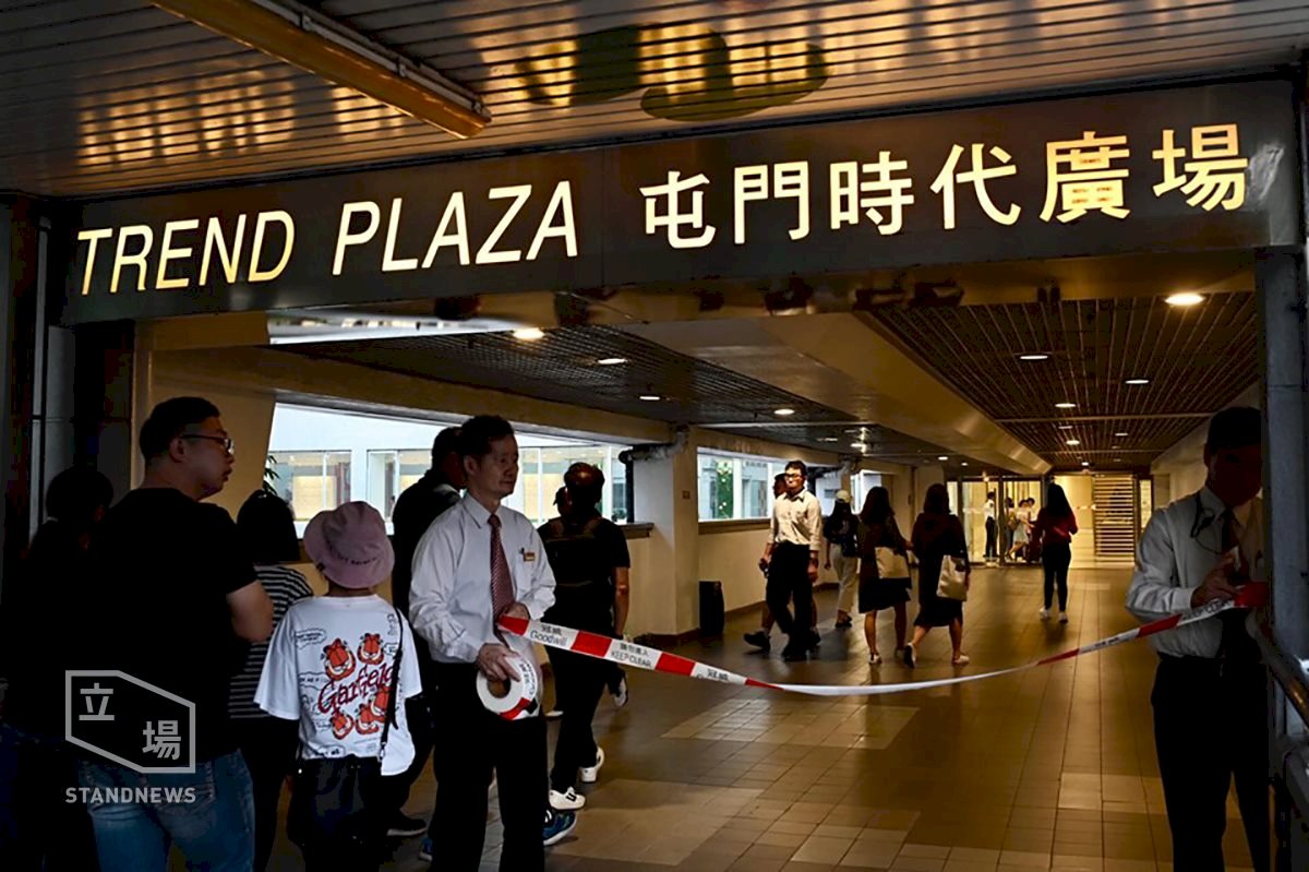香港「七區開花」行街反警暴,屯門是其一聚集點,數十防暴警於屯門大會堂平台戒備。接鄰的屯門時代廣場傍晚宣布提早關門。(圖:取自立場新聞)