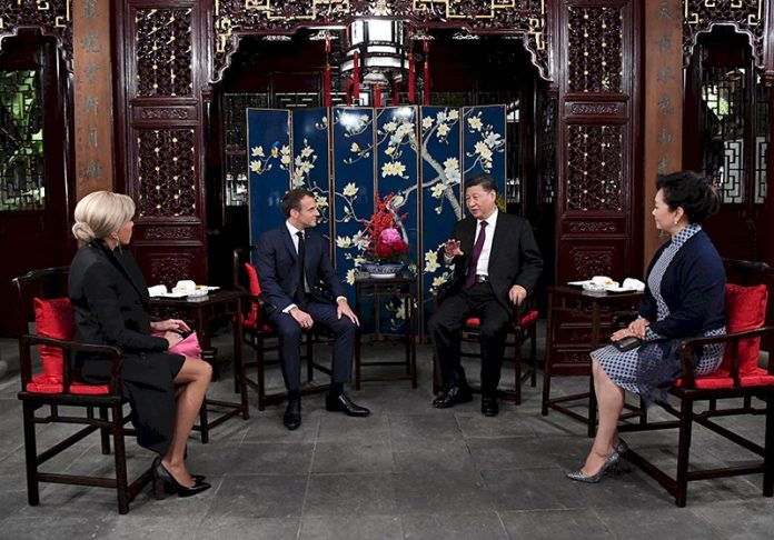 馬克宏也與習近平共進晚餐,並在今天與習近平會談後結束訪問。