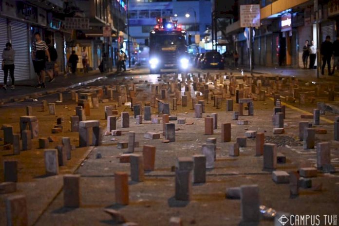 香港示威運動11日入夜暴力升級,警方共拘捕260人,醫院接獲99名傷者,當中2人危殆、4人嚴重。今天(12日)上午再有示威者堵路及破壞地鐵,雙方戰線拉到大學校園範圍,防暴警察施放多枚催淚彈。