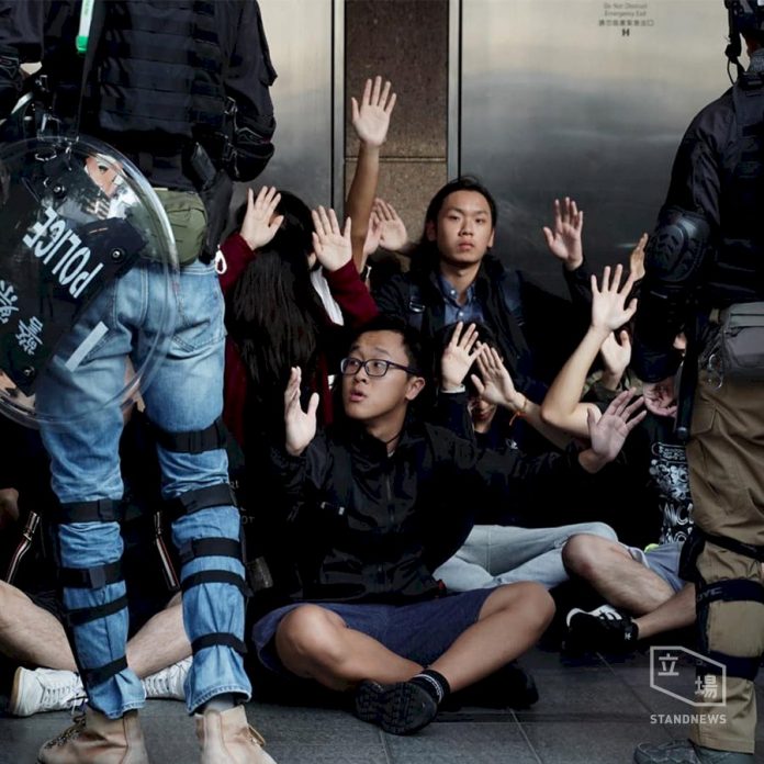 港警12日在示威活動中再捕287人,2/3是學生。圖為警方在中環逮捕多名年輕示威者。(圖:立場新聞)
