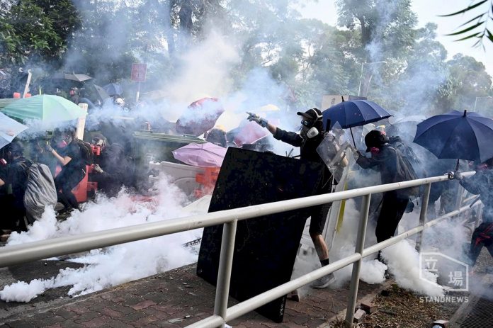 港警對中大發射多枚催淚彈,並衝入校園追捕示威者。圖:立場新聞