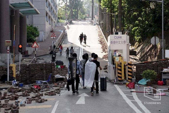 香港中大繼續有學生手拖行李箱離開校園。(立場新聞提供)
