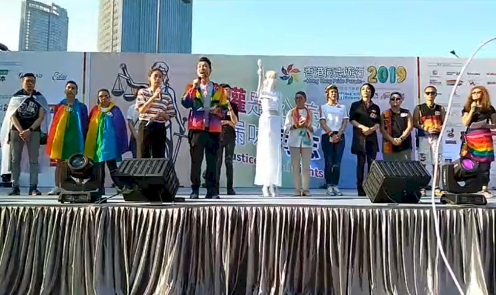 香港同志組織「香港彩虹」16日在愛丁堡廣場舉行集會。(翻攝自臉書)