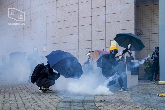 港警17日上午再度在香港理工大學附近與示威學生發生衝突,發射多枚催淚彈。圖:立場新聞