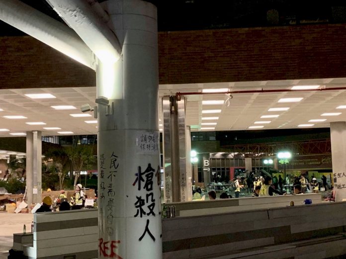 就在警方和示威者在理工大學持續激戰之際,警方今晚9時左右宣布,稍後將有進一行動,呼籲在理大校園的人從Y庭出口離開理大;而在Y庭離開,有防暴警察部署,在場的人擔心一旦離開校園,就會被錄影和拘捕,現場消息指出,已有第一批離開的學生和市民已被拘捕。