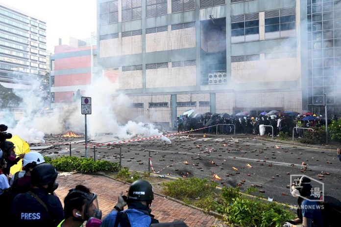 香港警方昨(17)日從白天強攻香港理工大學校園到深夜,在示威學生頑強抵抗下,目前仍有許多示威者留守在校內,儘管校長滕錦光透過影片表示警方同意學生和平離開校園,但上午有數十名學生準備從正門出口撤出校園時,卻遭港警以催淚彈攻擊,再度退回校園。人在理大校園內的理大學生會署理會長胡國泓表示,校內至少有500名示威者,有70至100人想嘗試離開,但還沒走到警方防線就被催淚彈逼退。