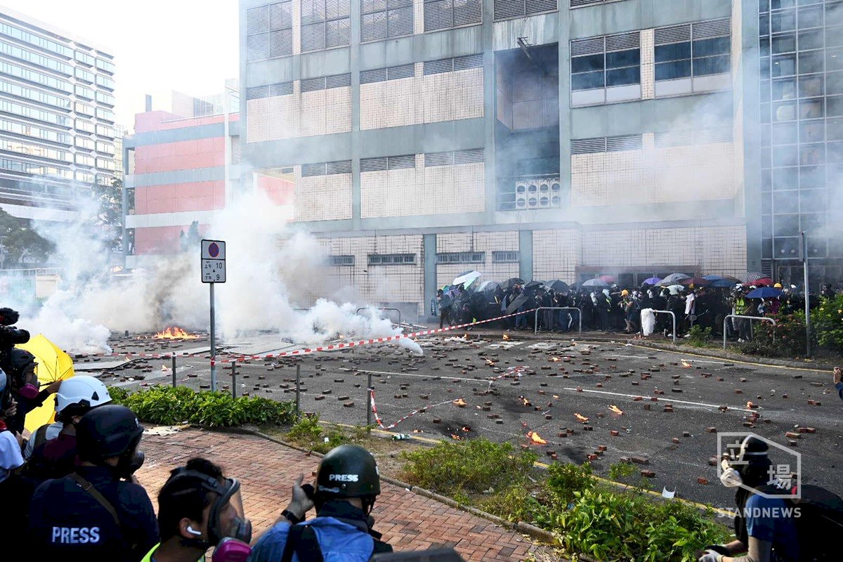 此後,港警不斷以催淚彈攻擊學生,而學生則數度以汽油彈擊退港警的裝甲車,誓死與學校共存亡,但在學生遭到大規模催淚彈攻擊後,清晨退入校園。