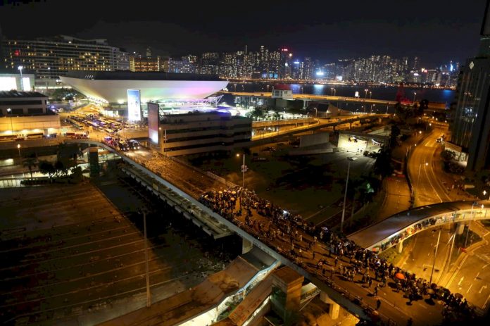 香港警方圍困理工大學的情況持續,今天(18日)入夜後,仍有一批示威者逗留在理工大學內,與警方對峙,警方在理大範圍外不斷播放多首流行曲包括「告別校園時」以及「十面埋伏」,以鼓動示威者投降。