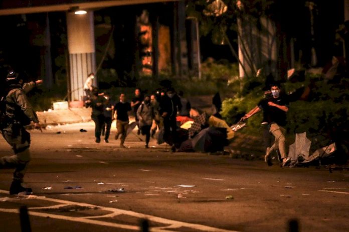 香港理工大學成反送中警民衝突激烈戰場,18日起港警包圍理大並在周邊設立防線,與校內示威者對峙;19日深夜,有部分民眾意圖闖越封鎖線被發現,警方隨即展開追捕。(資料照片/中央社)