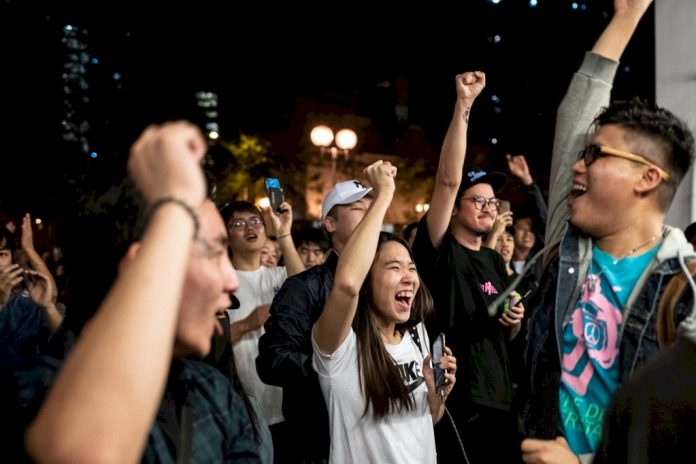 香港泛民主派在區議會選舉中大獲全勝。(AFP)