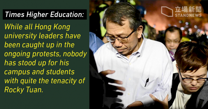 香港中文大學校長段崇智獲選泰晤士高等教育年度人物。(立場新聞提供)