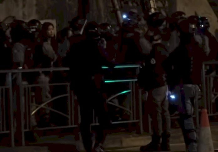 香港警方證實24日晚上在灣仔警察總部附近總共拘捕105人,其中包括58男、47女,年齡介於13到58歲之間,涉嫌參與未經批准的集結。(圖擷自YouTube)