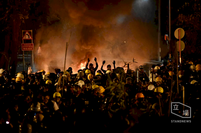 反送中重災區!香港中大維修費2.6億元。圖為鎮暴警察在中文大學校園內發射催淚彈。(立場新聞提供)