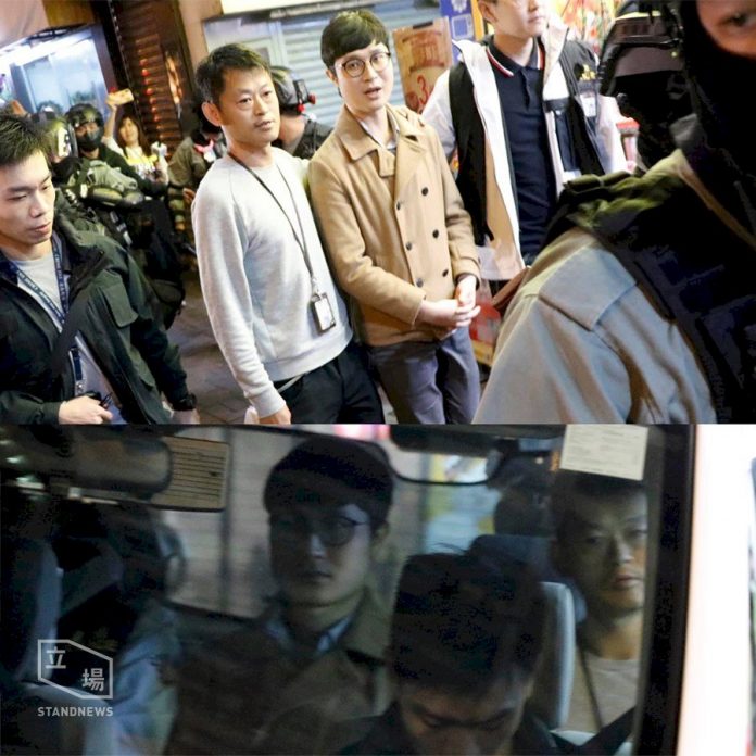 民間集會團隊發言人劉頴匡在晚上於灣仔見記者,交代集會人數及回應警方腰斬集會等。在會見記者後,大批警員突然到場並將劉頴匡帶走。(立場新聞提供)