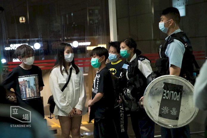 28 日傍晚有網民發起於中環 IFC「和你 Sing」,晚上約 9 時,大批警員於香港站內戒備,並攔查四名小孩,其後護送他們乘搭港鐵離開。(立場新聞提供)