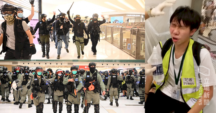 港警湧進沙田商場, 噴胡椒劑驅趕反送中支持者。(立場新聞提供)
