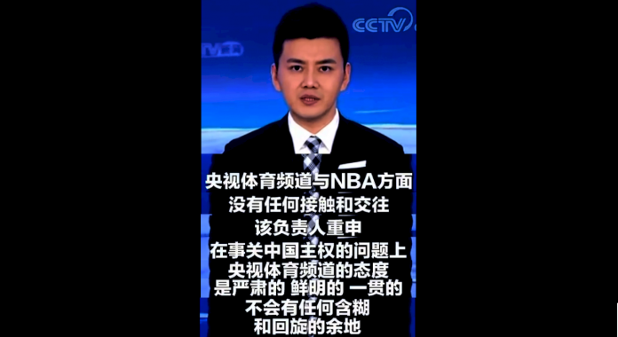 央視新聞今天在微博上發文表示,「就近日有關NBA賽事轉播的謠言,我們要重申,央視體育頻道與NBA方面沒有任何接觸和交往。」這篇貼文也同時附上了重複前述聲明的新聞播報片段。