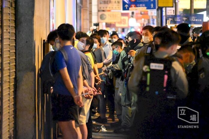 香港警察9日晚上多次在中環一帶攔查示威者或路人。香港蘋果日報報導,近11時港警在德輔道中一帶拘捕17男8女。