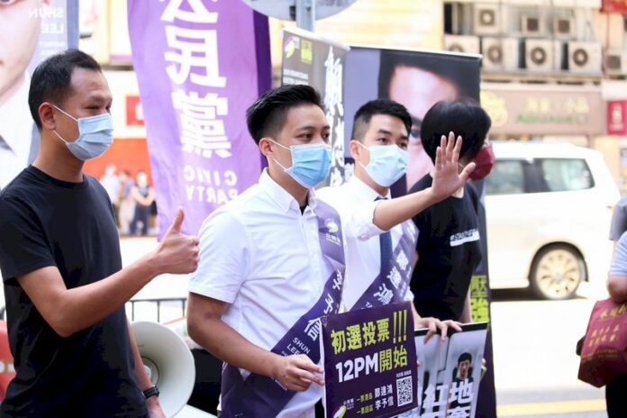 香港泛民11及12日舉行立法會選舉初選,以協調選出陣營的參選人,圖為公民黨參選人在街上拉票。(公民黨提供)