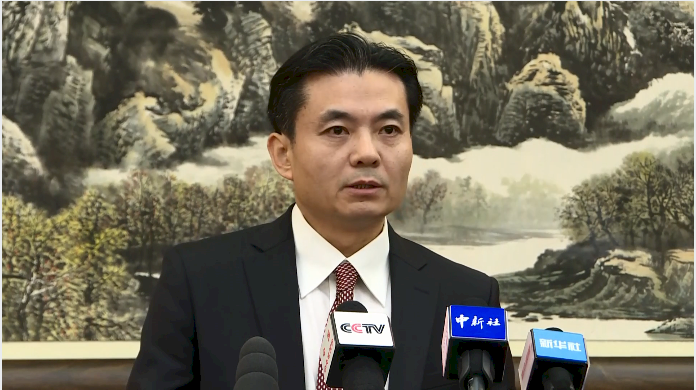 中國國務院港澳辦公室新聞發言人楊光表示,北京堅定支持香港特區首長領導特區政府。(翻攝直播畫面)