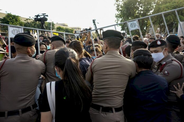 報導說,數千名身穿黑衣的年輕人,其中以學生為主,在民主紀念碑附近集會,年輕群眾哼唱著反政府的諷刺Rap歌曲,揮舞著指責帕拉育政府的標語,並要求廢除泰國嚴苛的誹謗王室法律。