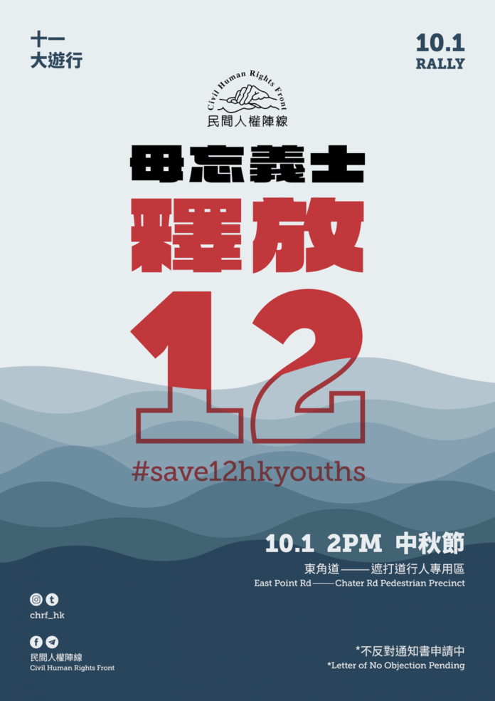 「10.1」是中國國慶,也是中秋節,香港民間人權陣線原先計劃當天舉辦遊行,要求北京方面釋放稍早前被捕的12名港人,但有關申請已被警方拒絕。