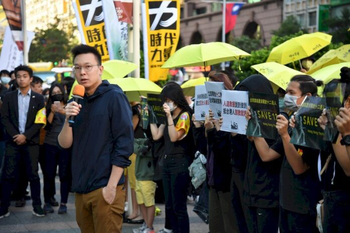 香港邊城青年等公民團體發起1025台灣撐港遊行,25日下午在台北登場,民進黨副秘書長林飛帆現身支持。(圖:中央社)