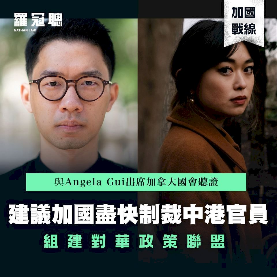 流亡英國的前香港眾志主席羅冠聰日前出席加拿大國會的一場聽證會,呼籲加拿大盡快制裁中國、泰國官員,並落實給予港人的「救生艇」計畫,與其他民主國家合作抗衡中共。