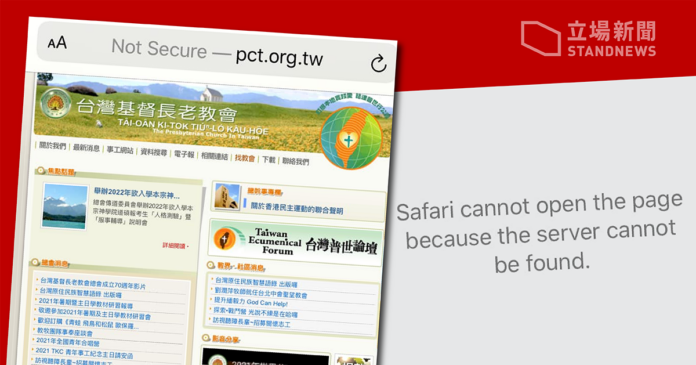 「台灣基督長老教會」網站疑遭香港封鎖。(立場新聞提供)